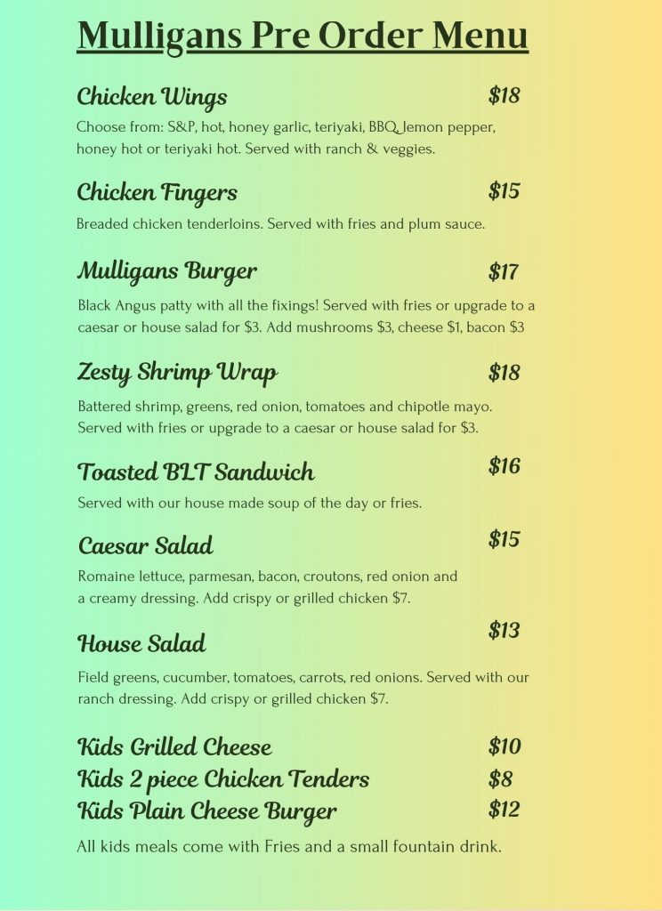 Mulligan's Restaurant at the Nanton Golf Club is a full service sit down Restaurant with indoor dining as well as an outdoor patio. We offer a relaxed atmosphere with a view overlooking the seventh tee and surrounding areas, and we are open to the general public. Mulligan's Restaurant is now open year round to serve Nanton residents and visitors throughout the year.